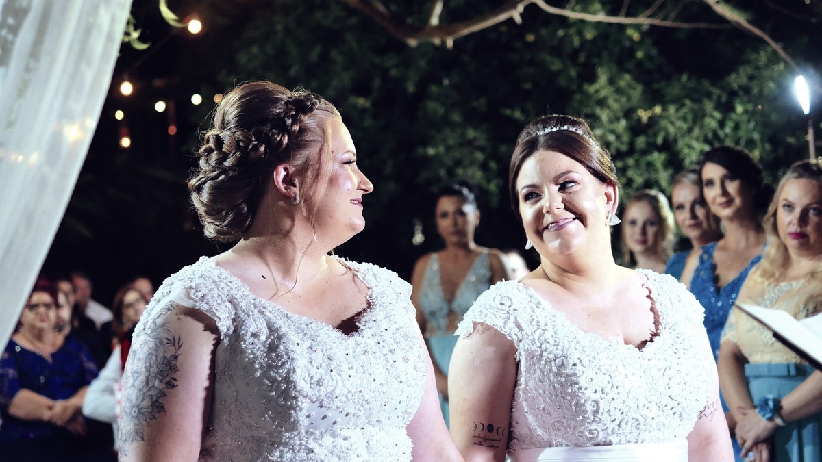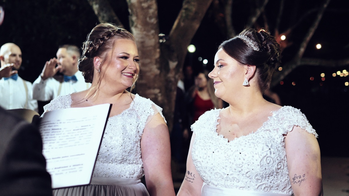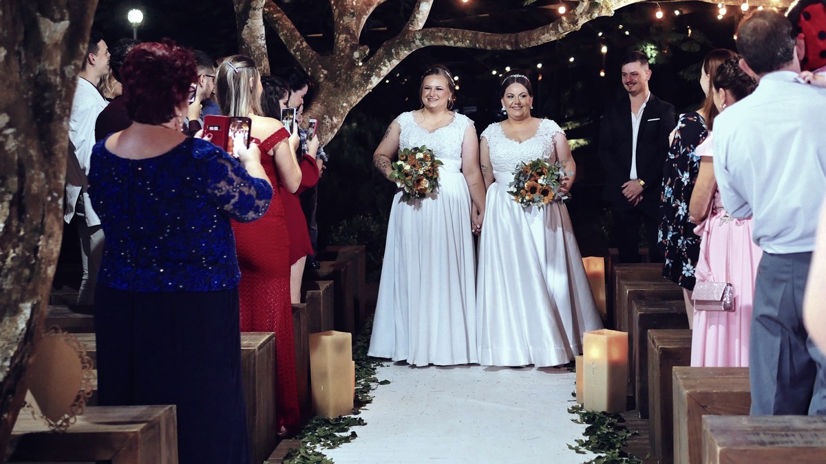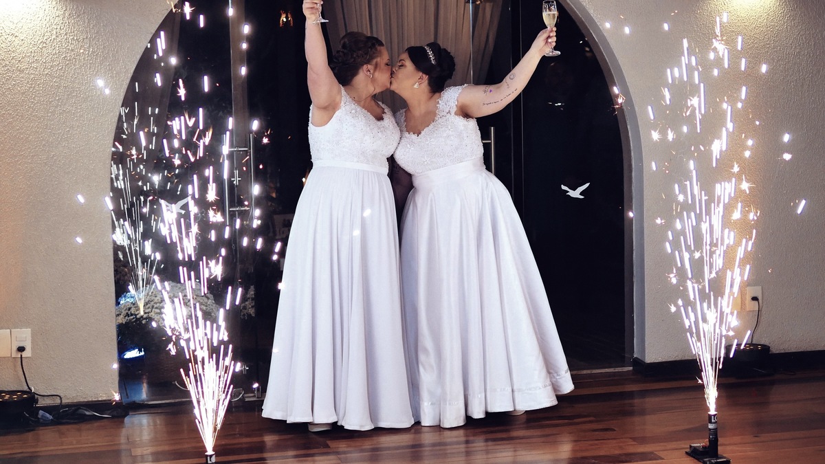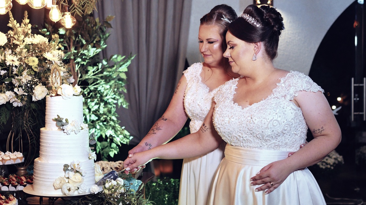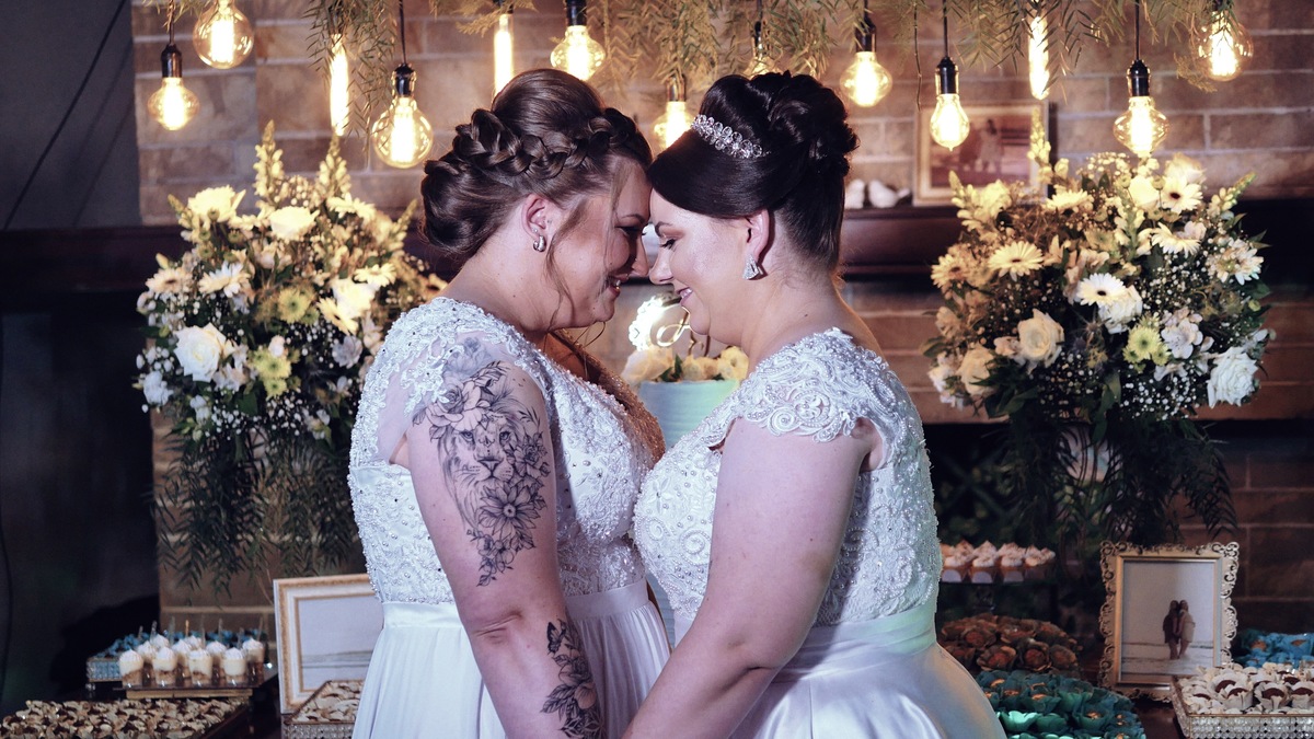 Após 9 anos de relacionamento, elas decidiram realizar o sonho de se vestirem de branco.
