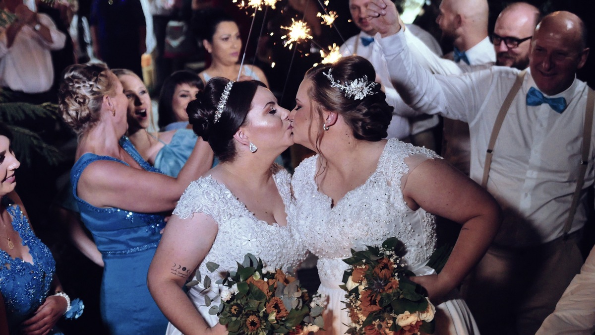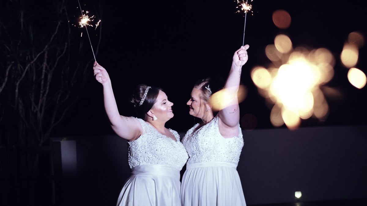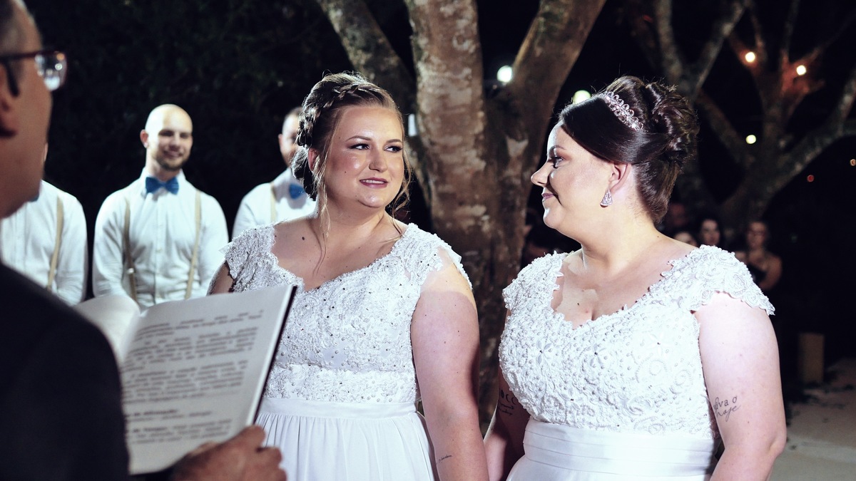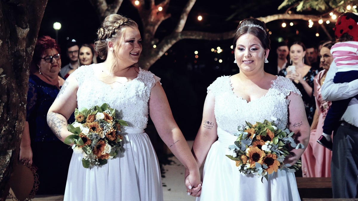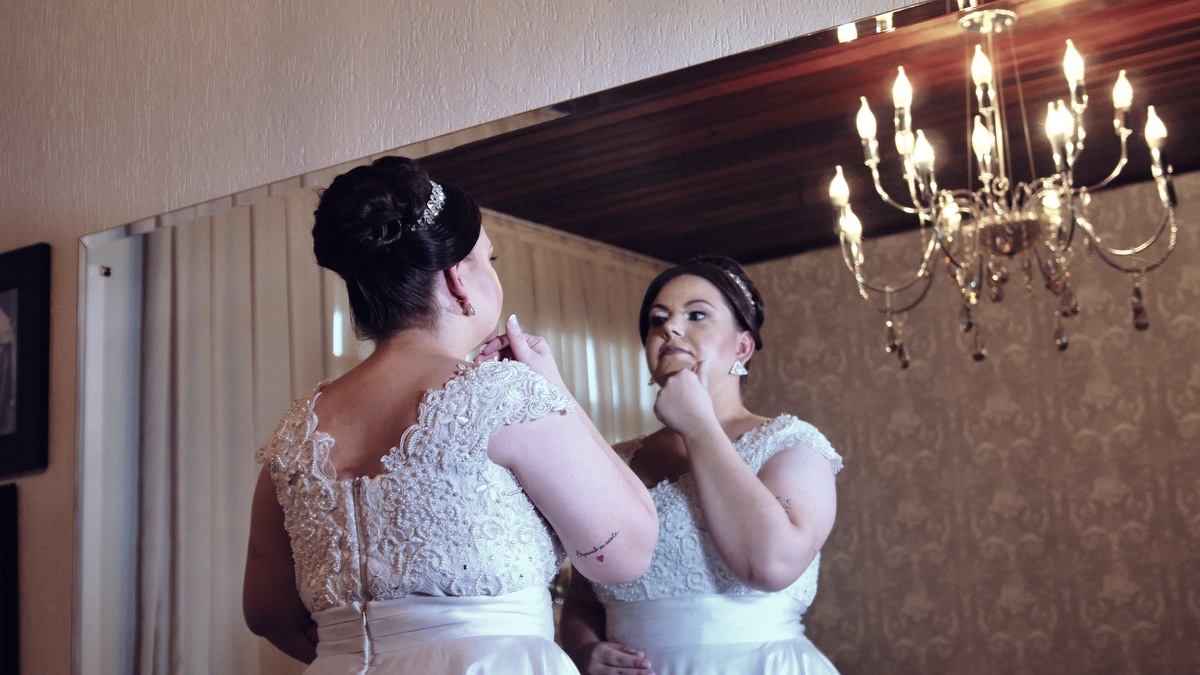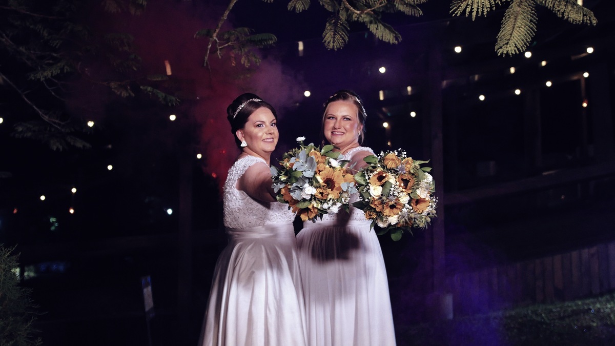 Após 9 anos de relacionamento, elas decidiram realizar o sonho de se vestirem de branco.