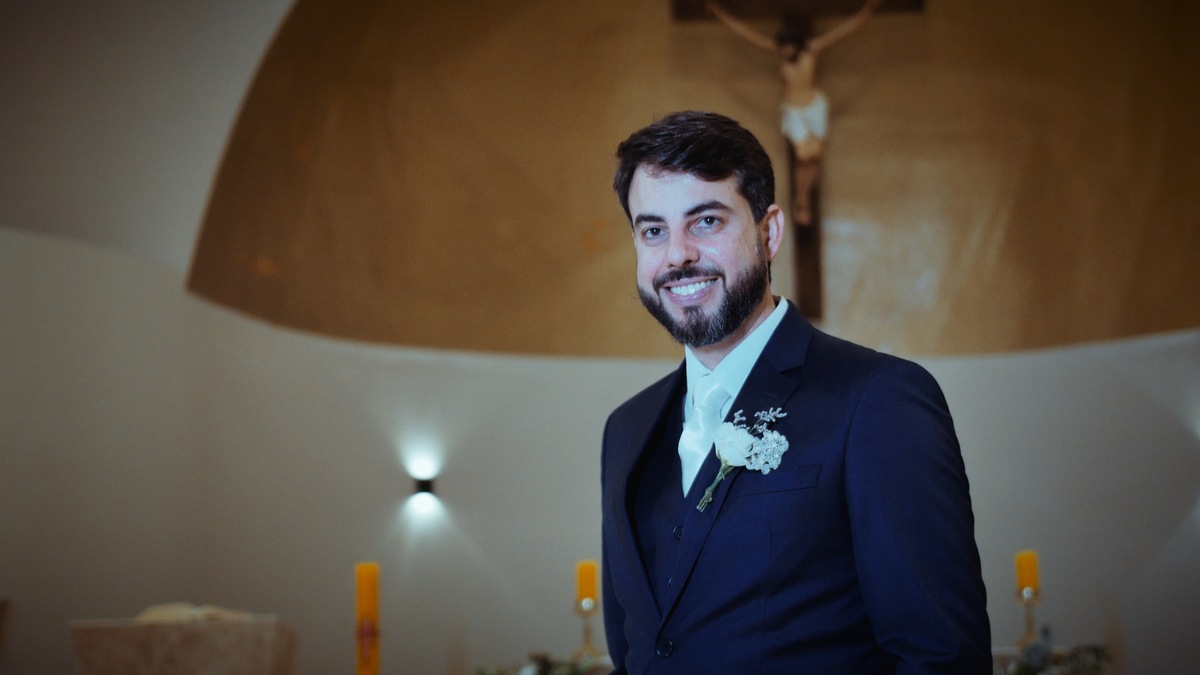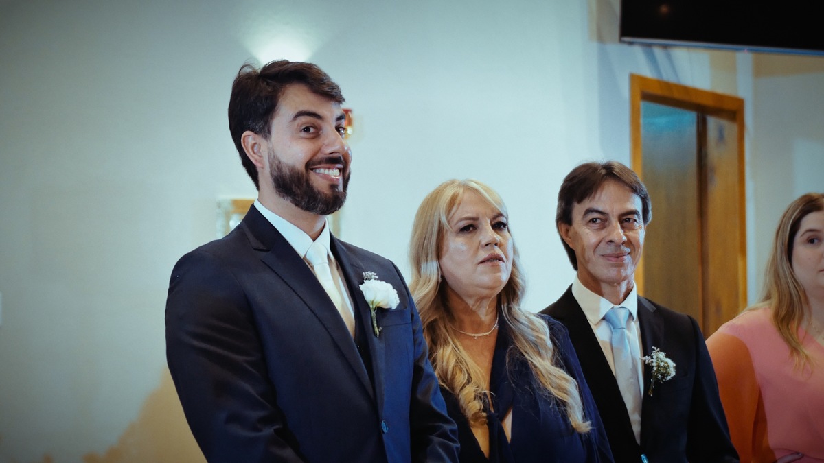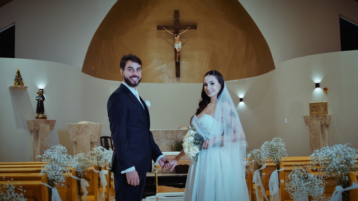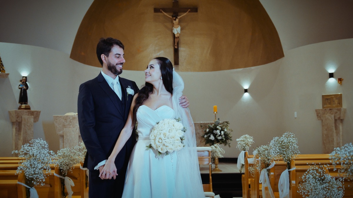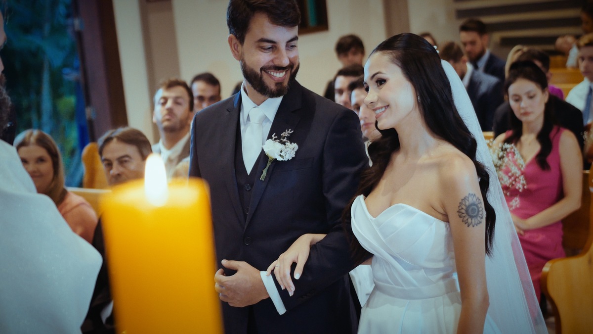 Um casamento tradicional realizado em igreja católica e no final o padre convida todos os padrinhos para subir no altar e deixar uma mensagem para todos.