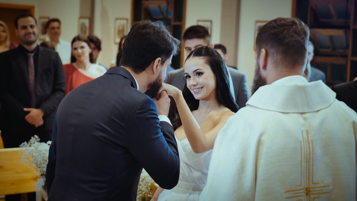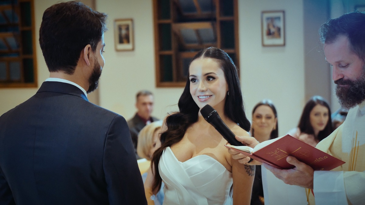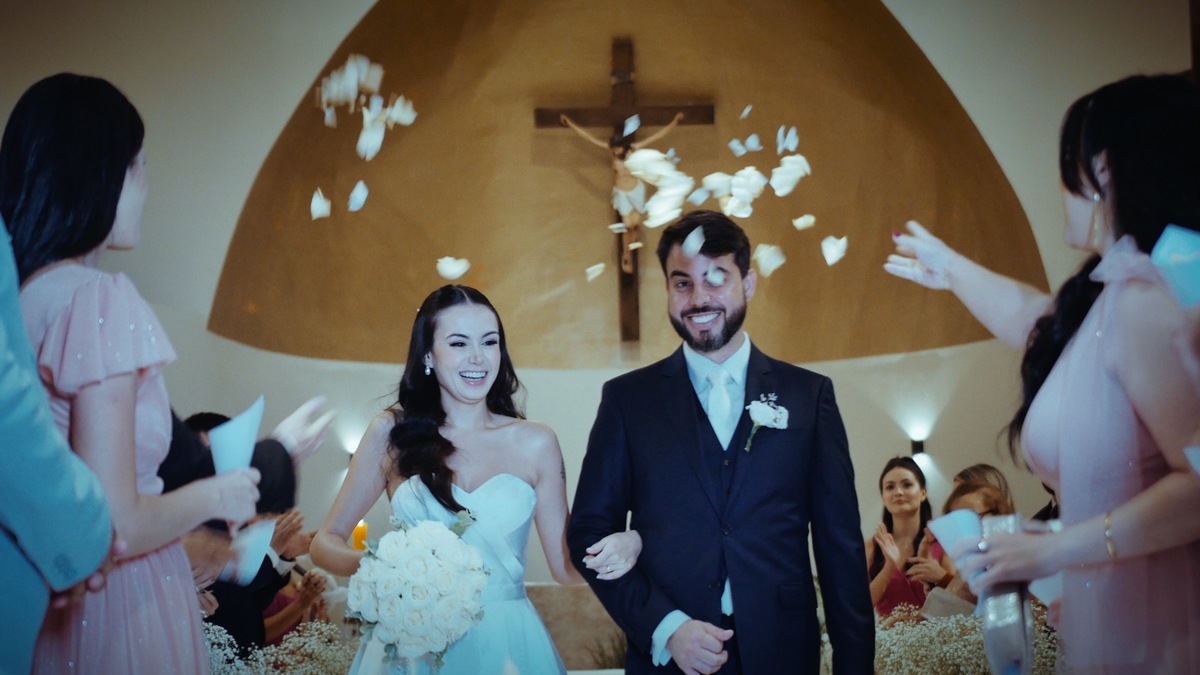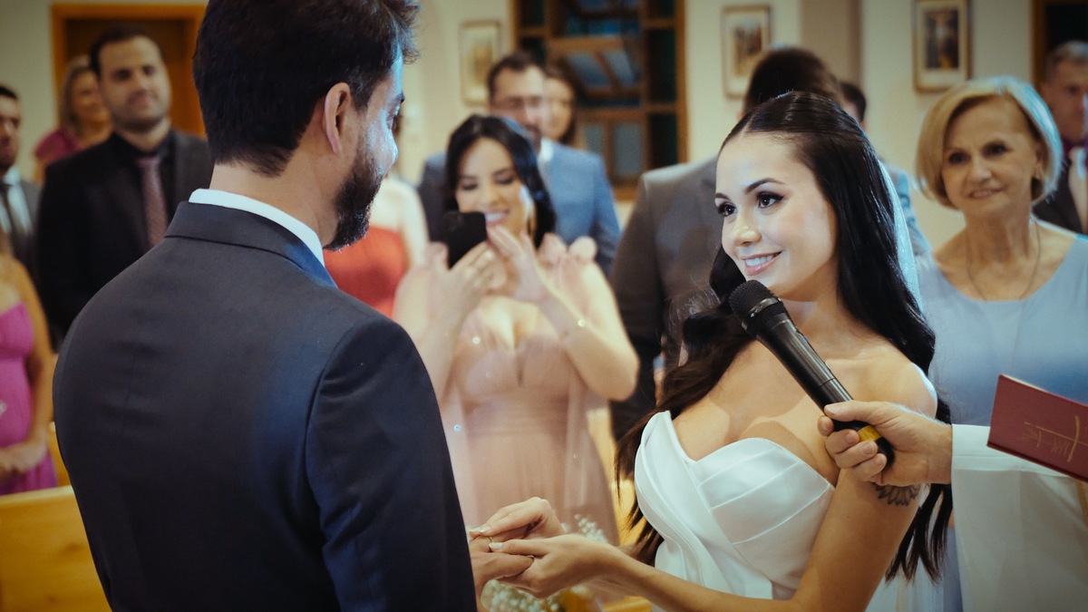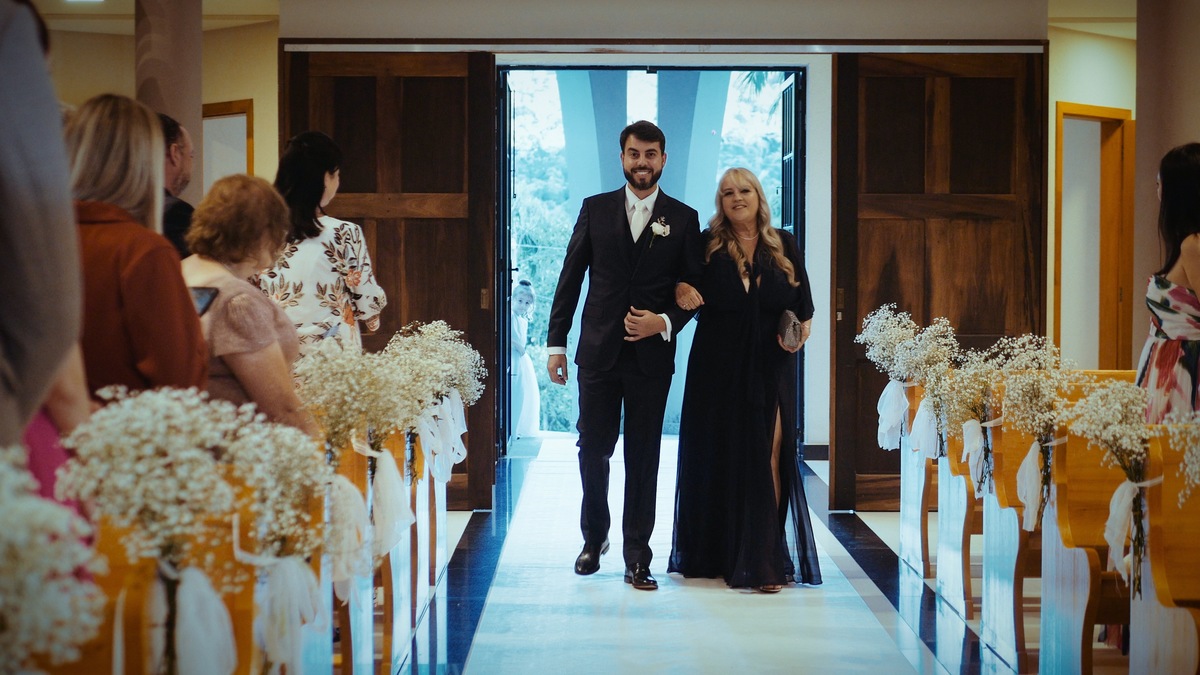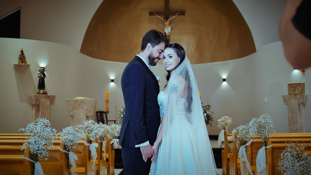 Um casamento tradicional realizado em igreja católica e no final o padre convida todos os padrinhos para subir no altar e deixar uma mensagem para todos.