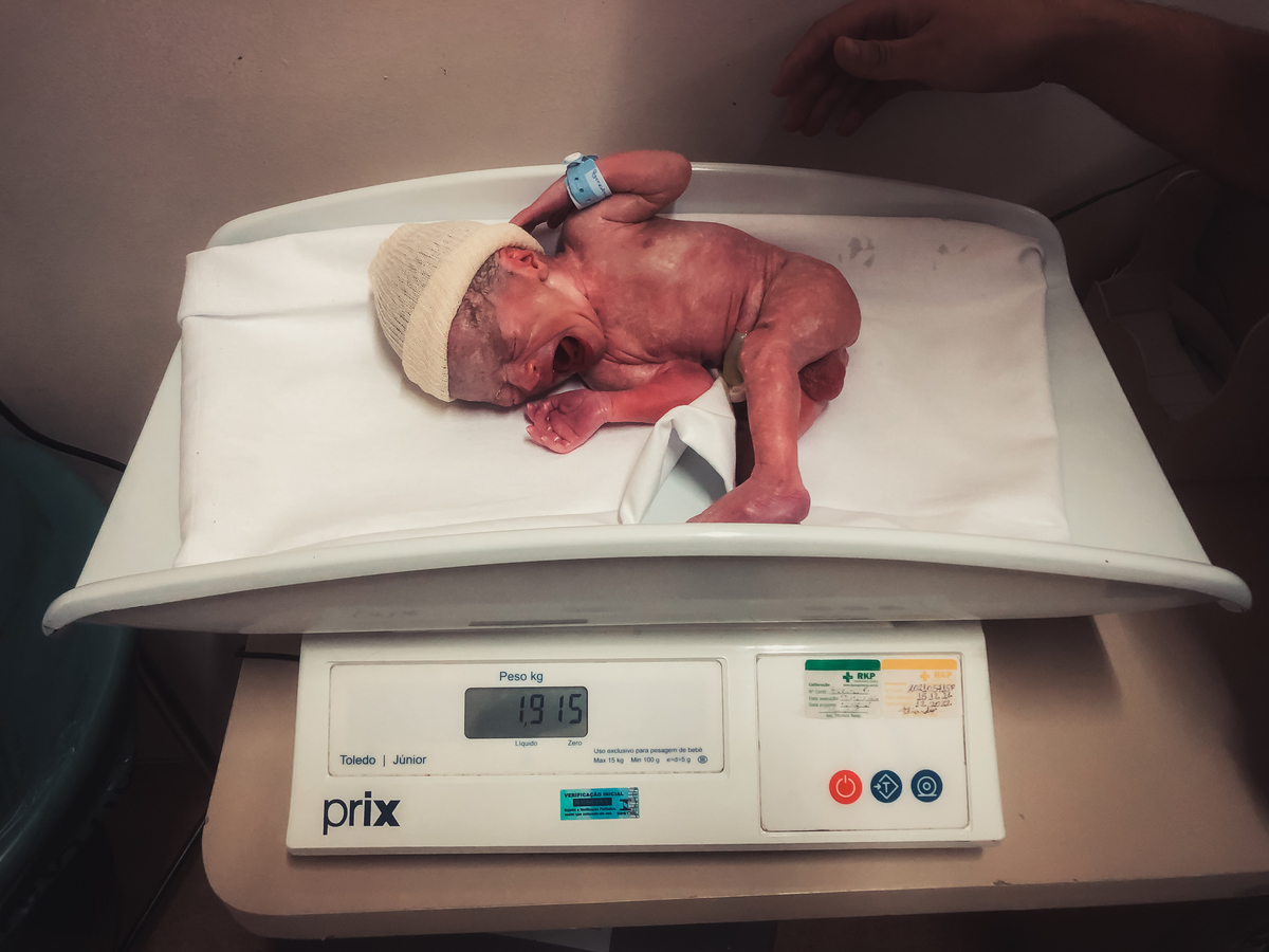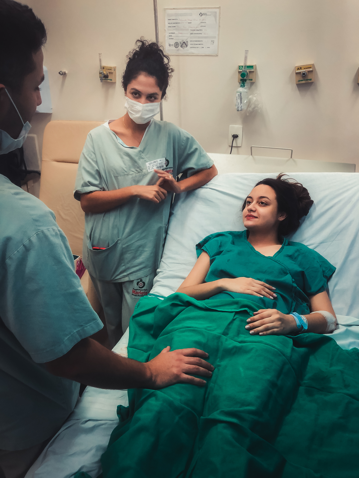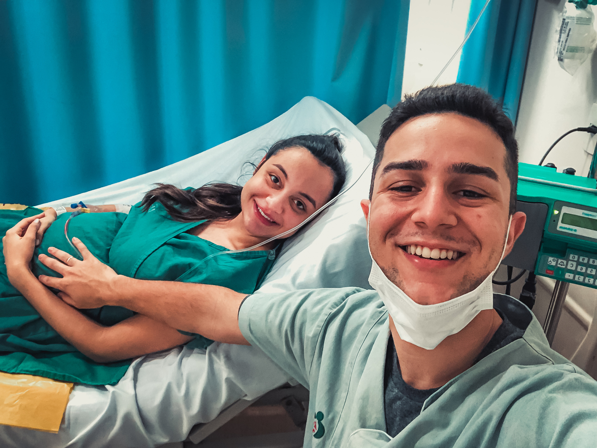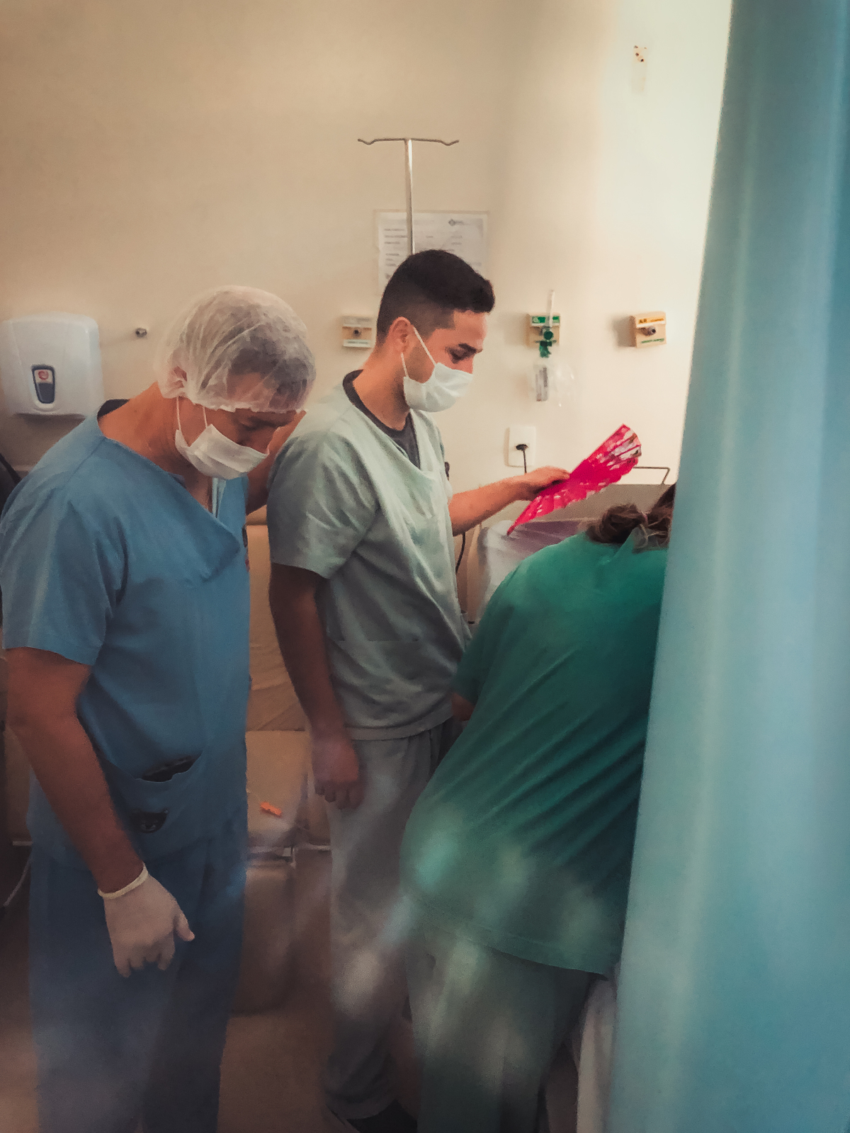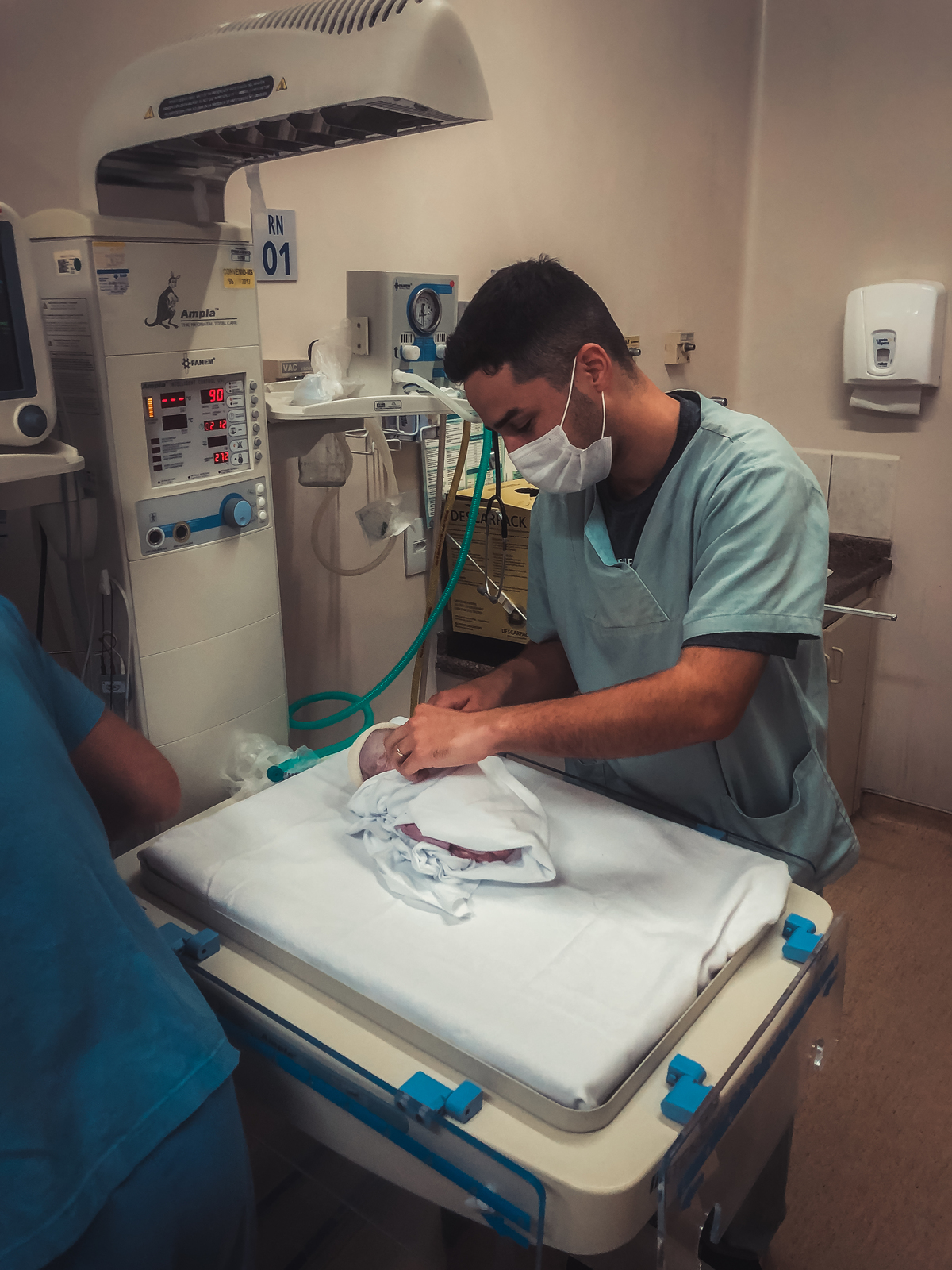 Foi uma loucura, pegamos os equipamentos e saímos ás pressas, mais de 60k de distância chegamos ao hospital as 8h25 e mesmo assim perdemos um tempinho pois era necessário fazer o exame de teste do Covid e foram uns 20 minutos de ansiedade pois o Isaque poderia nascer a qualquer momento.