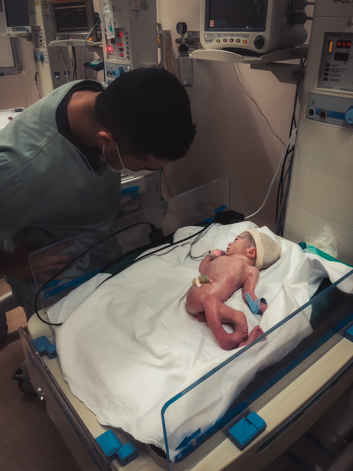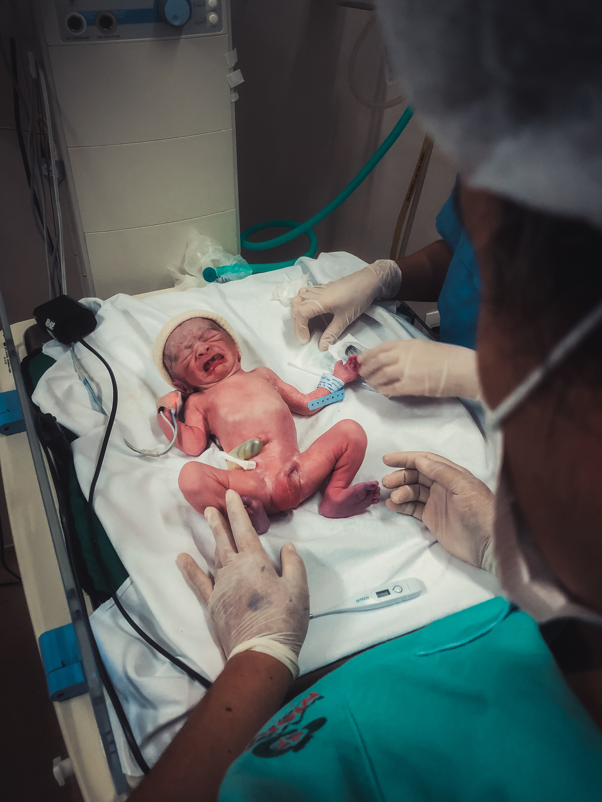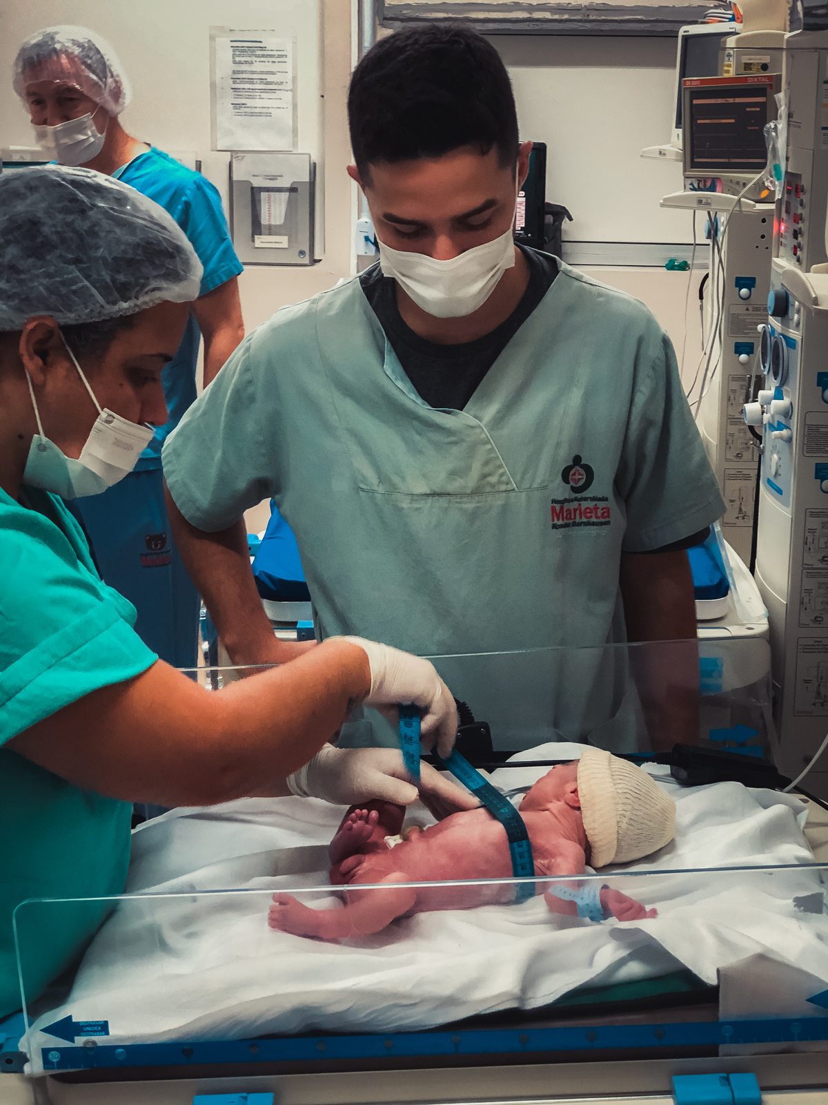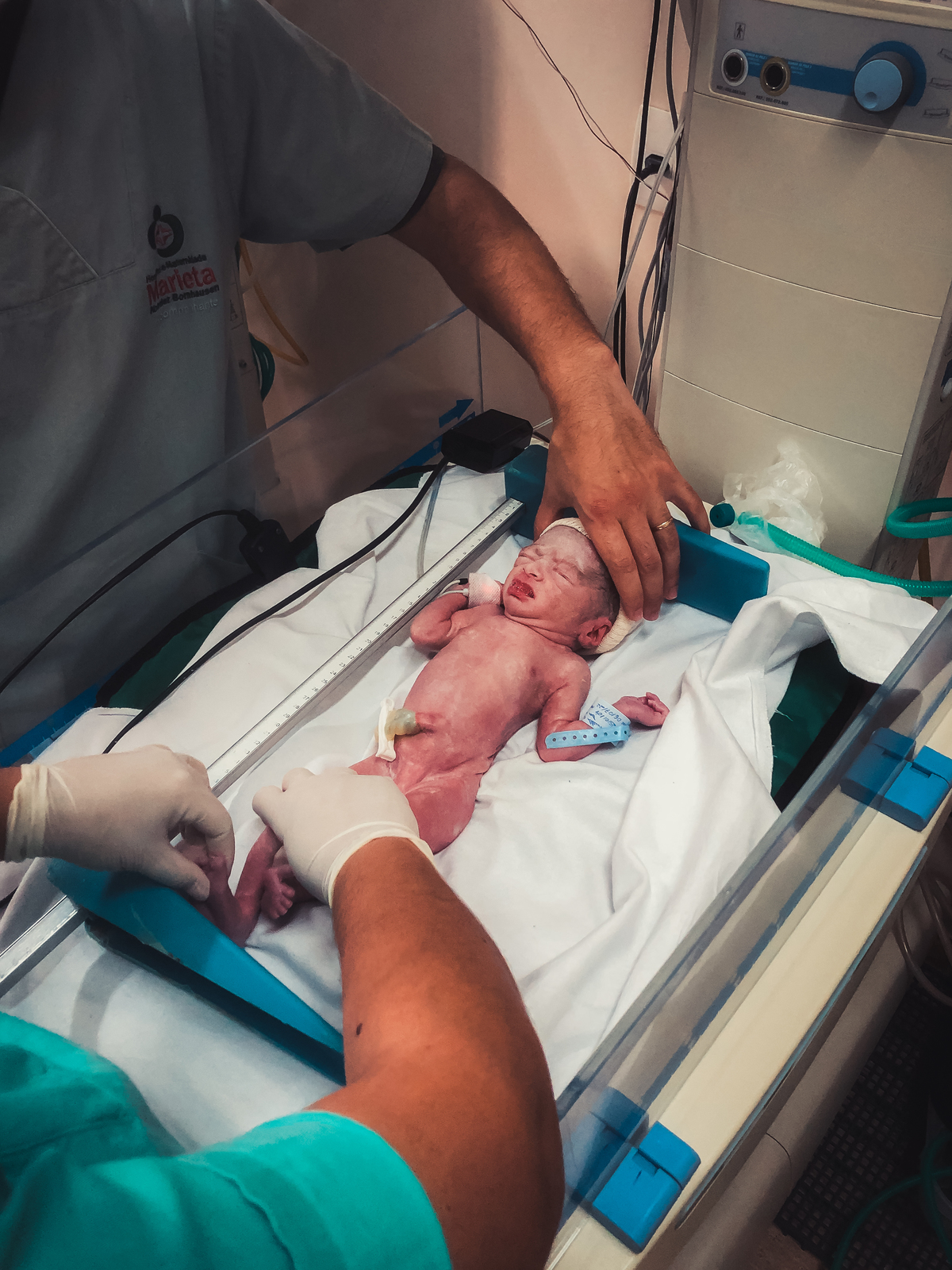 Foi uma loucura, pegamos os equipamentos e saímos ás pressas, mais de 60k de distância chegamos ao hospital as 8h25 e mesmo assim perdemos um tempinho pois era necessário fazer o exame de teste do Covid e foram uns 20 minutos de ansiedade pois o Isaque poderia nascer a qualquer momento.